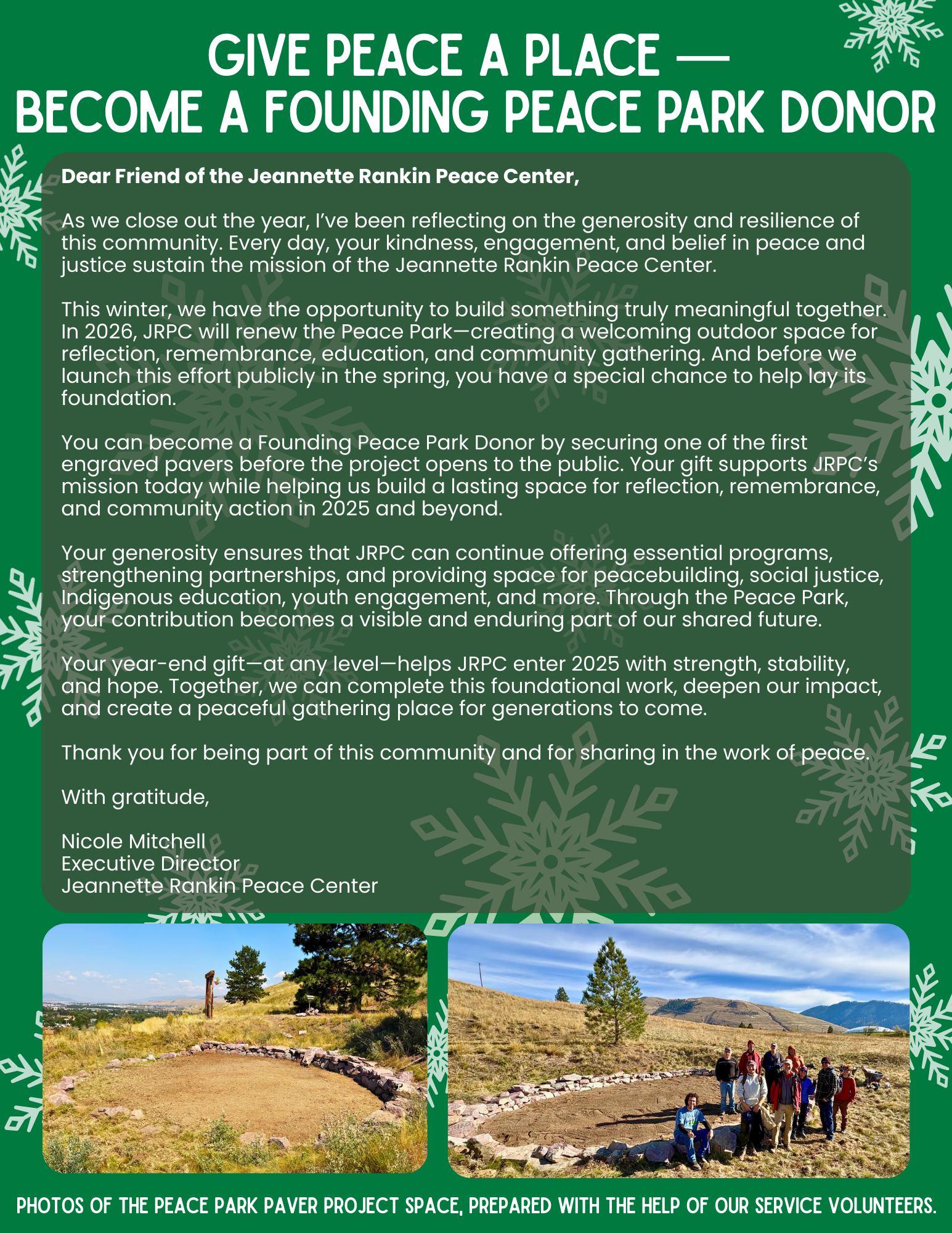 Your generosity fuels peace, justice, and community resilience. Thank you for supporting the work of the Jeannette Rankin Peace Center.