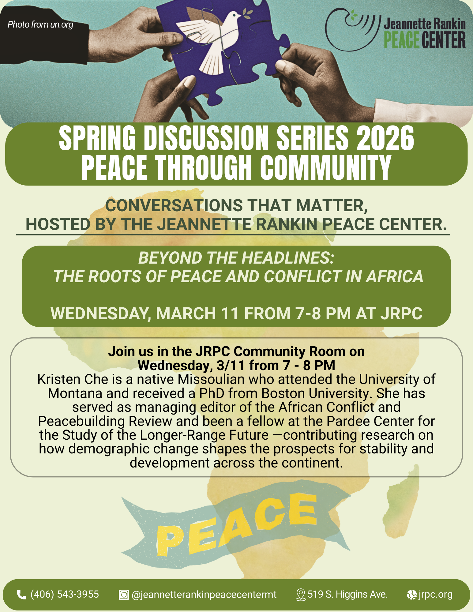 wednesday, march 11 from 7-8 pm at JRPC